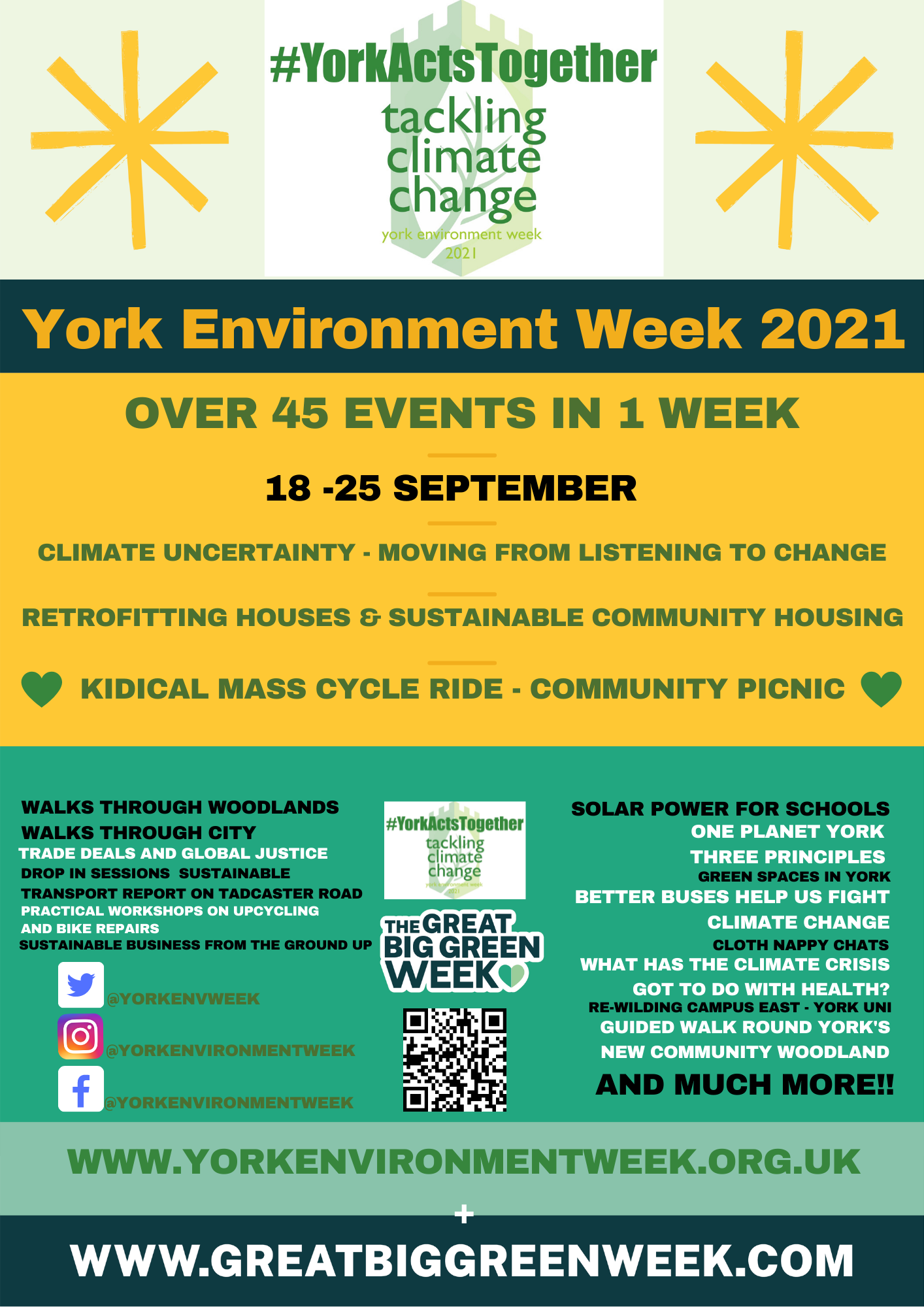 The focus of YEW 2021 was York acts together – tackling climate change. Event organisers reported on how their events contributed to this ambition. Paricipants committed to actions to take themselves such as joining a group or volunteering; there was increased networking among participants and among organising groups; and inceased interest in future events, activities and services.